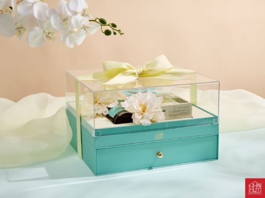 • Bố trí vật phẩm: Cân đối và đẹp mắt, không quá cồng kềnh hay đơn điệu nhưng vẫn thể hiện trọn vẹn ý nghĩa muốn truyền tải đến người nhận.
