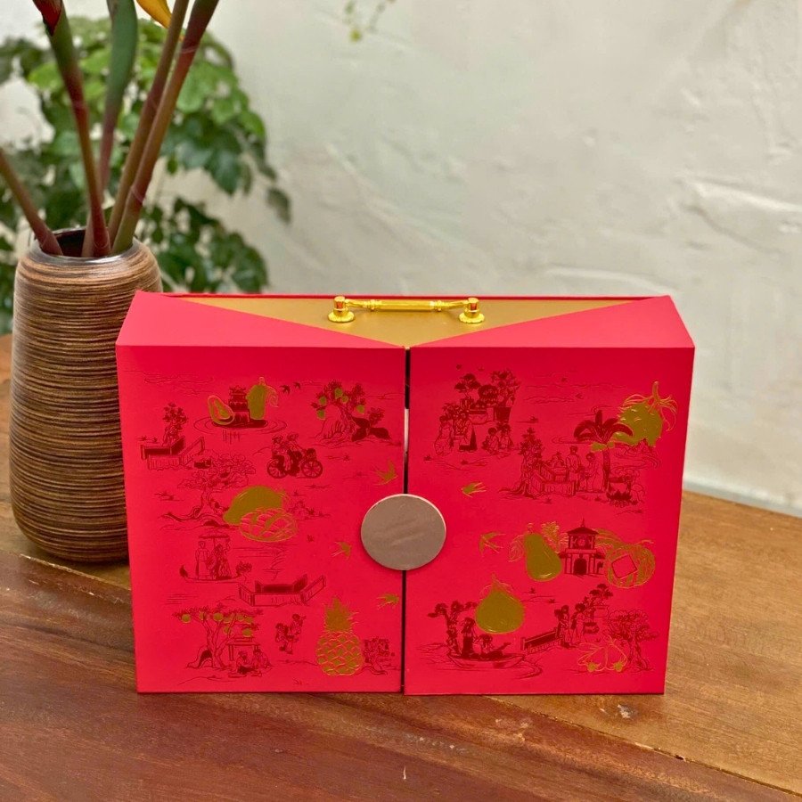 Hộp quà tết cao cấp Nhà Mứt để đựng các món quà chất lượng. Đây đều là các phần quà được chọn lựa kĩ lưỡng đáp ứng được thị hiếu ngày nay. Ngoài ra ở phần trong của lắp hộp có trang bị đầy đủ các dụng cụ cần thiết phục vụ cho việc đóng mở đảm bảo được sự tiện lợi cho người sử dụng.
