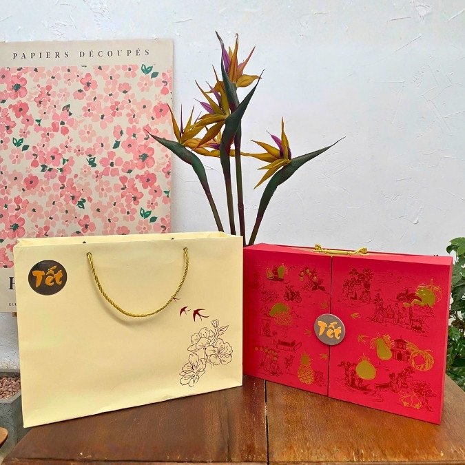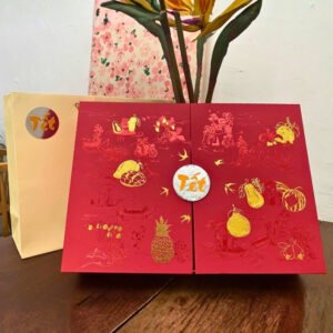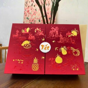 Hộp Quà Tết Cao Cấp 2026 – VƯỢNG là một sự kết hợp hoàn hảo giữa nét đẹp cổ điển và hiện đại, sự nhẹ nhàng, tinh tế, xinh đẹp đã được lột tả từng nét qua tên gọi VƯỢNG – Quà Tết của Nhà Mứt