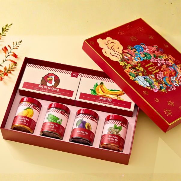 Quà Tết là lời tri ân tới khách hàng, đồng nghiệp, đối tác, và những người thân thương.Chúc một năm mới an khang thịnh vượng, tấn tài tấn lộc. Quà Tết năm nay nên chọn gì để tặng khách hàng. Hãy cùng Nhà Mứt khám phá Hộp Quà Tết Xuân Bính Ngọ – Tết 1 có gì nhé.